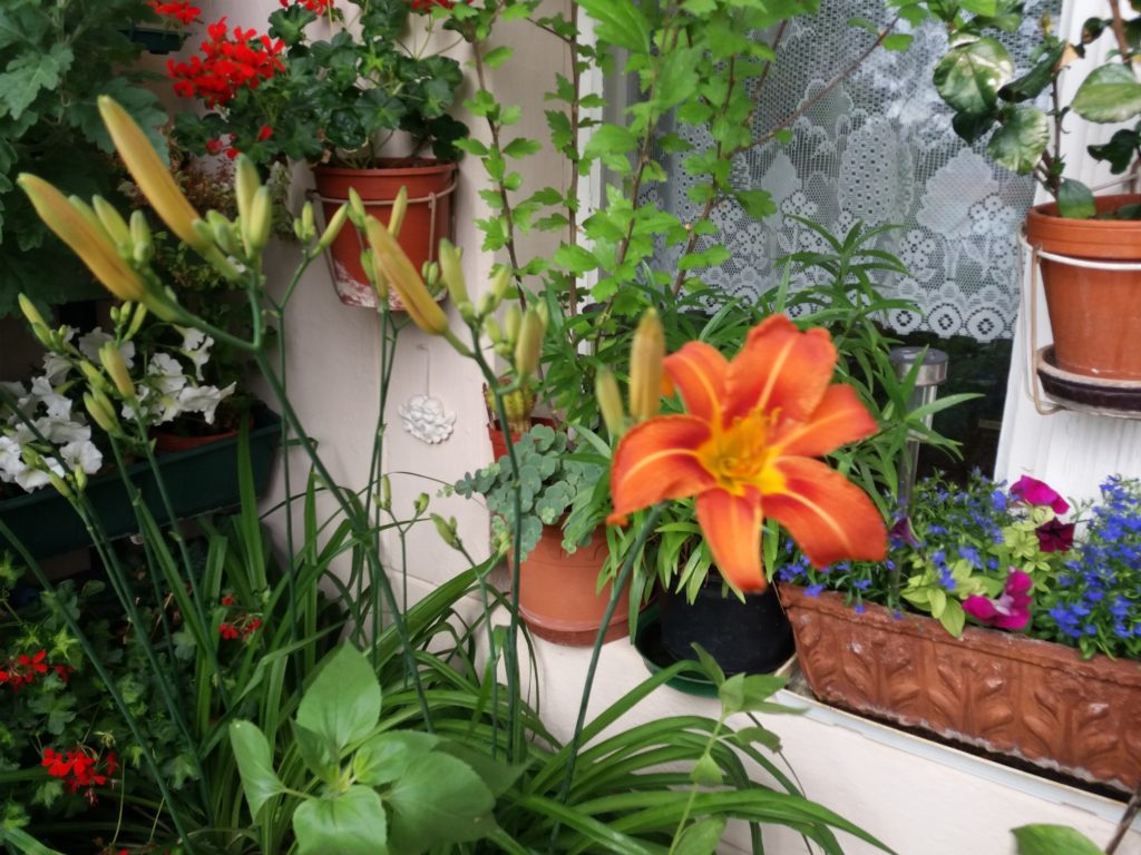 Zwölf Stiele Taglilie. In einem Sommer waren es mal achtzehn. Und wieder nur zwei Maiglöckchen. Aber oft waren es nur Maiblättchen. Der Balkon sieht gut aus. Ich brauche Blumenerde. Da ich gerade beim Frisör war, könnte ich langsam zum Blumenladen schlendern, in der Hoffnung, dass mich ein netter Herr anspricht und zum Kaffee einlädt. – Aber gern, ich muss nur vorher einen Sack Blumenerde kaufen. Den nimmt er mir dann höflicherweise ab. – Also ich schlendere los … nichts … weiter zu Passage … nichts. – Dann eben die teure kleine Portion, die ich allein trage kann, 10 Liter. – Das schaffe ich mit links.