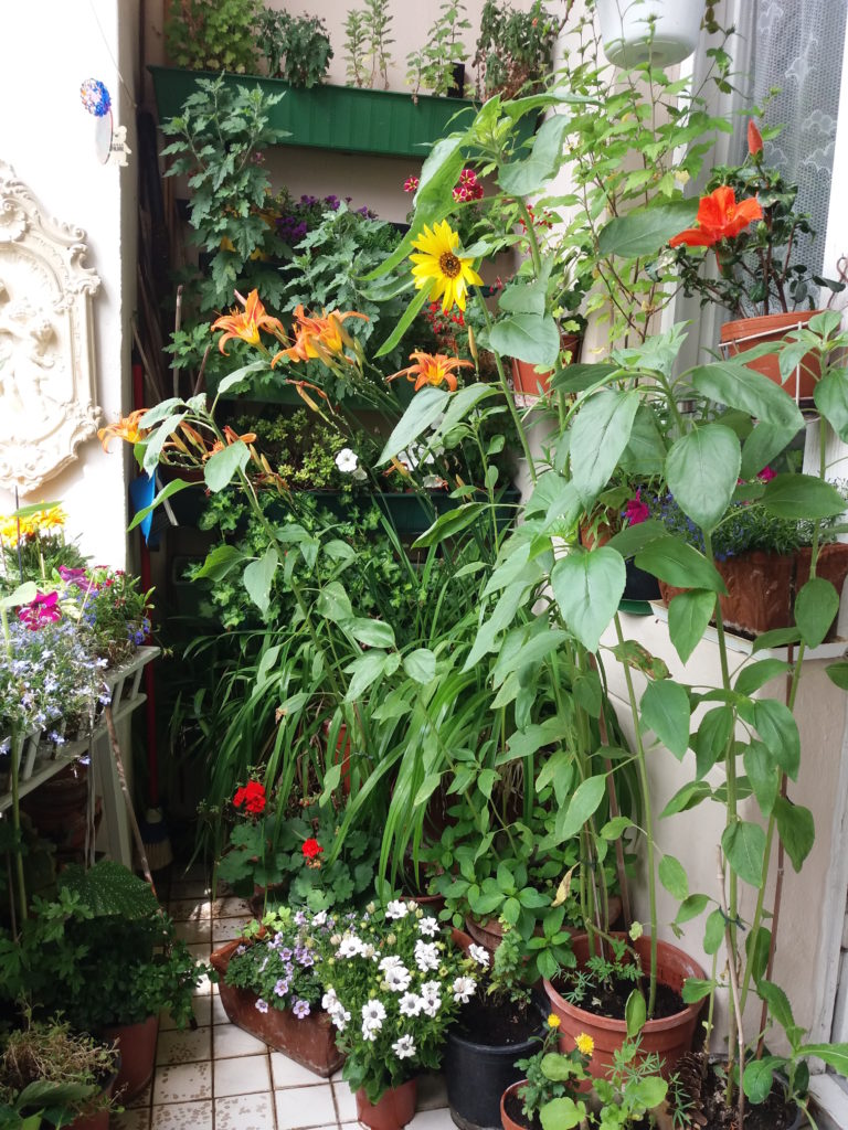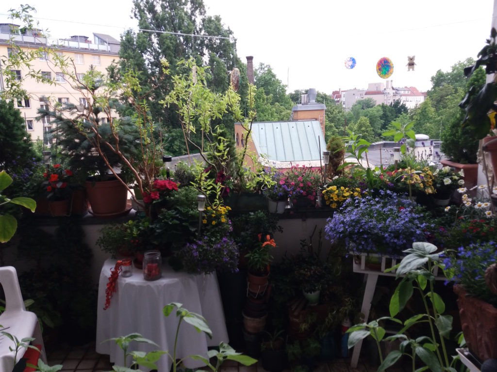 Die Abendschau kommt nicht, Raffaela auch nicht, Heidrun höchstens ein- zweimal im Jahr. Es macht keinen Spaß. Der Balkon macht so viel Arbeit, er sieht schön aus, und dann guckt keiner. Wie wär’s mal mit einem ‚Tag der offenen Tür‘? Aber dann will sich sicher niemand die Schuhe ausziehen, oder es kommen feindlich gesinnte Leute, die über meine primitive Einrichtung lästern.